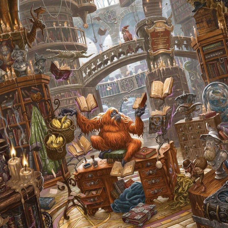 If there’s a common thread running through both Tolkien and Sir Terry (and for what it’s worth, there are many, but bear with me here for the sake of argument), it’s this preoccupation with the transformative qualities of language and story and the capacity for narrative to shape reality.3 By extension, these repositories of language, discourse, story, and narrative comprise a labyrinth of worlds that are—to again quote Tolkien—both fair and perilous.